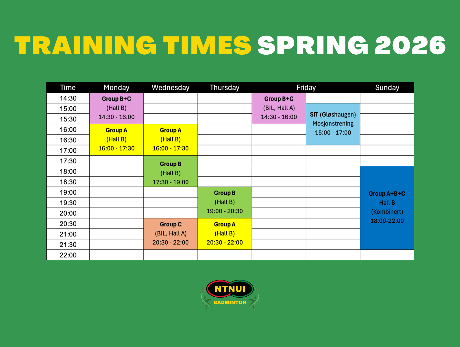 An overview of all tournaments being organized can be found on Badmintonportalen. If you need assistance in setting up your own player profile, please send an email to badminton-turnering@ntnui.no, and we will take care of it.
