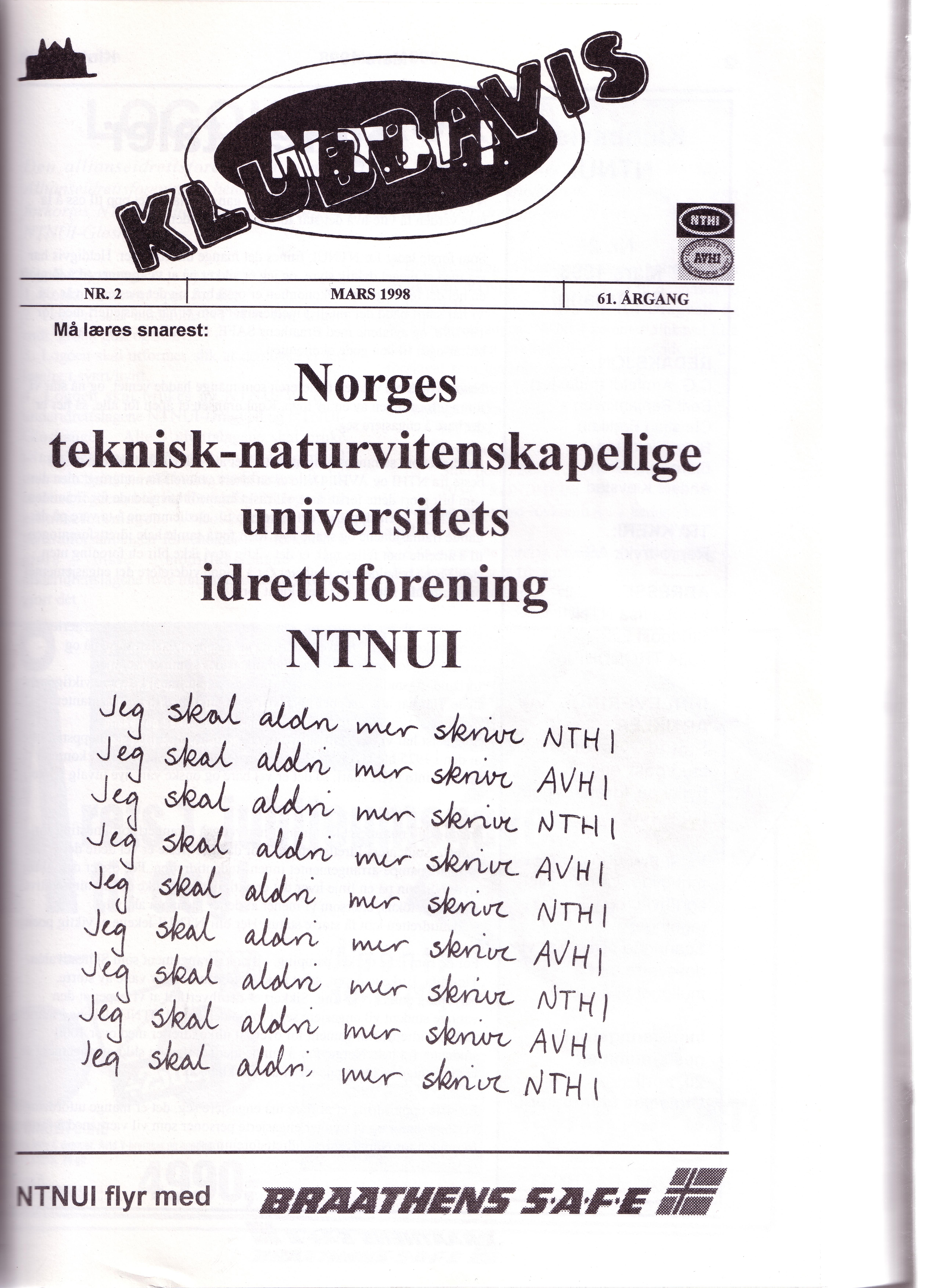 From the NTNUI Club paper march 1998, where it says “I will never ever write AVHI/NTHI” at the front page.