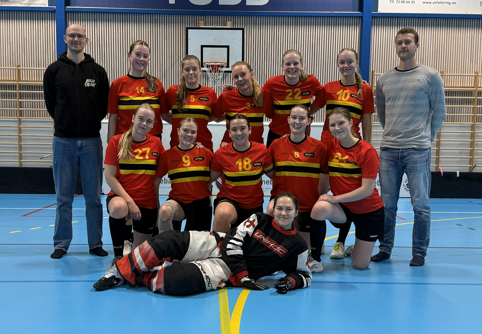 All practices are happening in Hall B at Dragvoll idrettssenter, where each team has two practices every week. Here is a video that locates us.