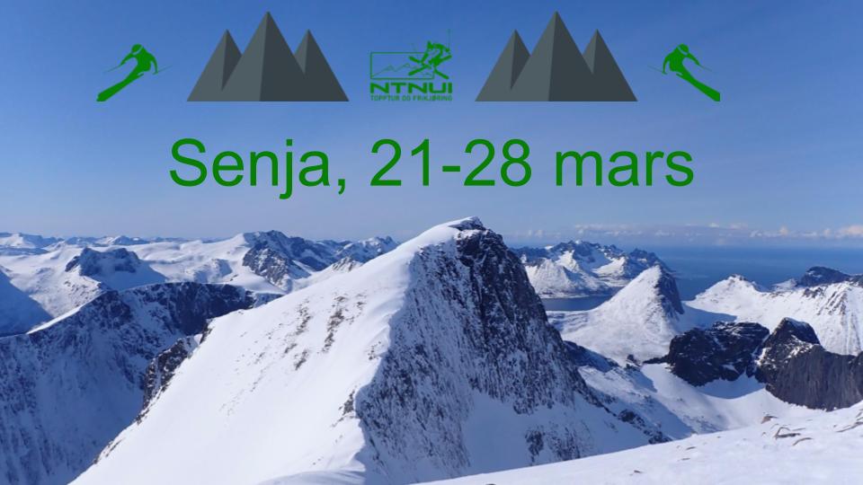 I år går langturen til en av Norges aller vakreste plasser, nemlig Senja. Turen varer fra 21– 28. mars, og starter tidlig morgen den 21. mars, hvor vi kjører biler fra Trondheim opp til Ballangen. Her sover vi en natt i en gymsal. Morgenen etter kjører vi tidlig den siste biten til Senja, hvor vi skal bo på Yttersia Base. Her blir vi boende frem til 27. mars, før vi kjører tilbake til gymsalen i Ballangen og returnerer til Trondheim dagen etter.